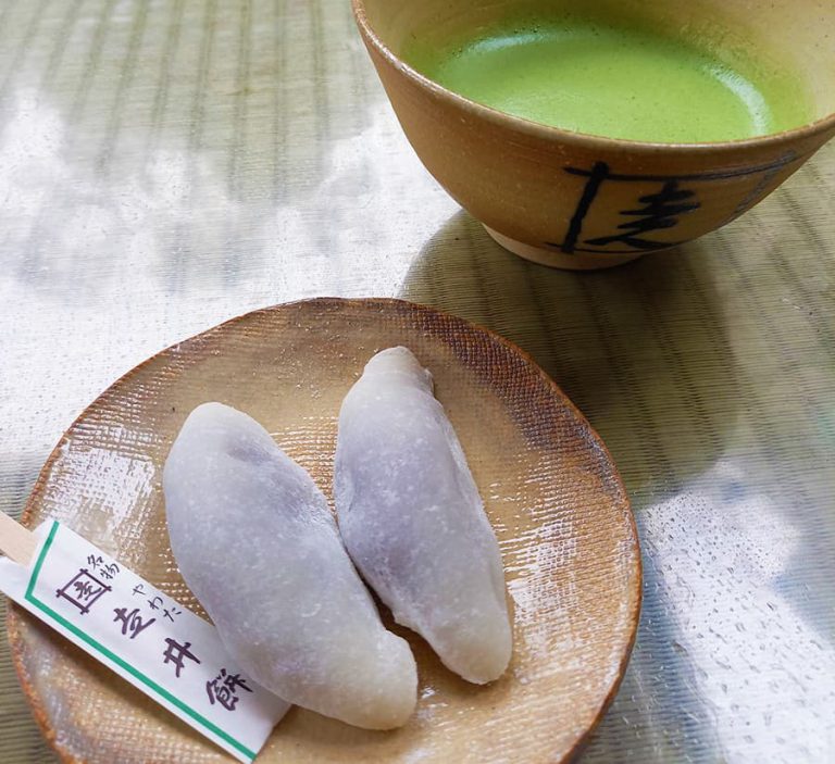 やわたブランド『ヤワタカラ』認定食料品 走井餅。北海道産の小豆をザラメ砂糖で炊いたこしあんを、滋賀「羽二重」のもち米をついた餅で包んだ和菓子。毎日その日の分だけ手作りされ、柔らかな口当たりとあっさりとした味わいが特徴です。